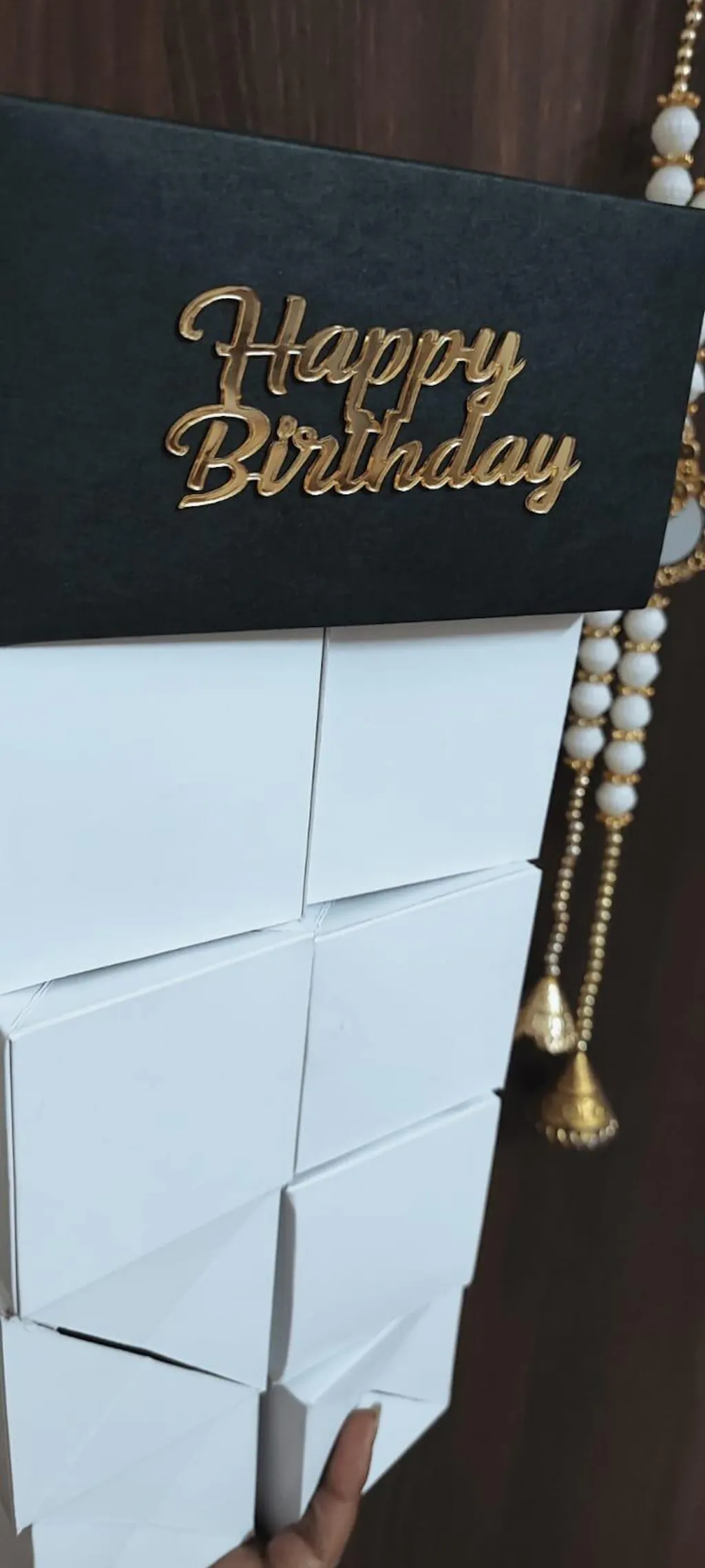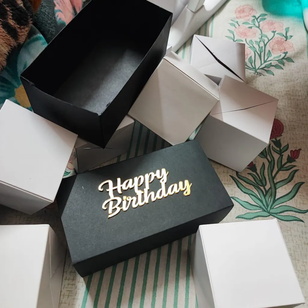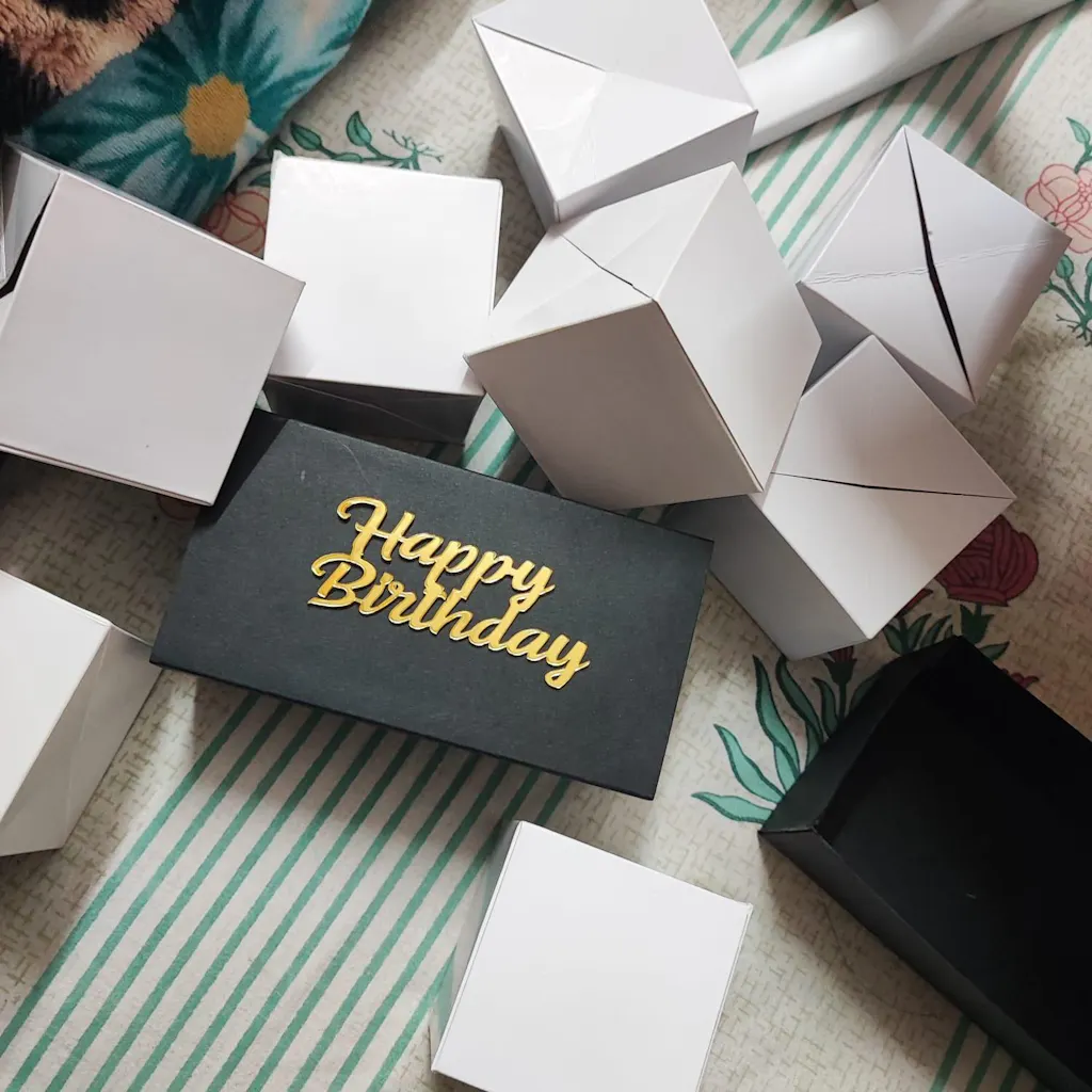Crafted from premium quality material, this explosion gift box is perfect for birthday gifts, anniversary gifts, Valentine’s Day gifts, proposal gifts, wedding gifts, and romantic surprises. The elegant black outer box with gold “Happy Birthday” print adds a luxury feel, while the inner white cubes provide ample space for memories, messages, and photos.