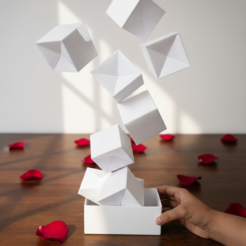 Make every celebration special with this handmade Explosion Gift Box. Designed for a delightful unboxing experience, the box opens to reveal multiple mini cubes where you can paste photos, messages, or small surprises. Each mini box measures 7x7 cm and allows customization on four sides, turning it into a beautiful DIY memory album. The premium-quality outer box (15 x 8 x 6 cm) features an attractive birthday design and ensures durability. Perfect as a birthday gift, anniversary gift, Valentine gift, or personalized surprise for your loved ones, this creative photo box is ideal for preserving special moments in a unique way.